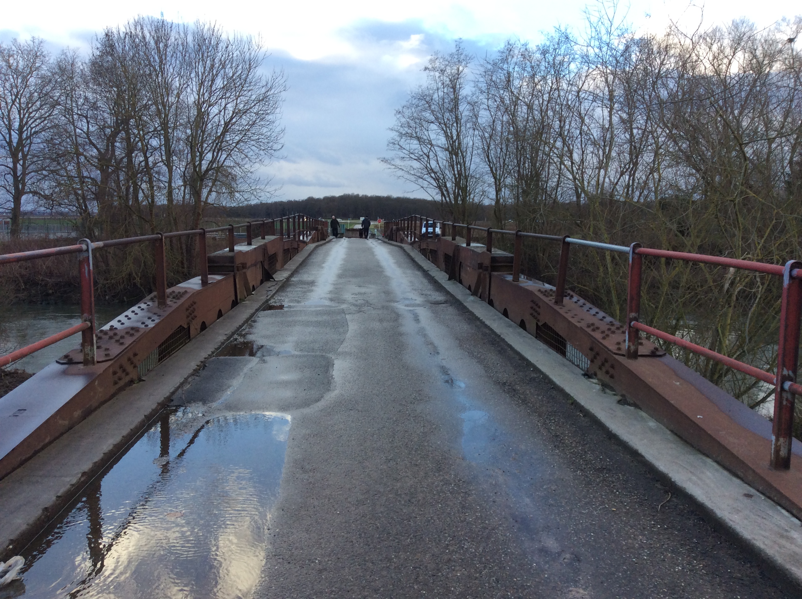 Post war many areas of France were devastated by the fighting and hundreds if not thousands of bridges had been destroyed. Mulberry Whale roadway sections were brought from the Mulberry Harbour at Arromanches and used as replacements. This one was put in place in 1947 and known locally as the ‘Pont des Americans’ – American Bridge.